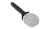 Pizza cutter, jumbo classic extra large stainless steel wheel with hand guard and heavy duty varnished wood handle.- Extra large stainless steel wheel