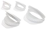 Progressive International is your source for the widest range of functional, inventive, and fun kitchen tools and great ideas put into practice. Our in-house designers spend hours in the kitchen coming up with ways to improve on a variety of traditional tasks and tools. Established in 1973, our commitment to quality and service allows us to offer a broad selection of quality kitchenware and other household products. With this Progressive dough press, simply pace dough in the press, add ingredients and press down, creating quick and easy shapes for tarts, snacks and more. This set includes 4 different sizes for a variety of choices. Dishwasher safe.These simple devices (why didn't I think of that!) create pretty, as-easy-as-pie pastries. On one side of a press is a beveled edge for cutting rounds from rolled-out dough. Turn the press over, place the dough round on the sealing "teeth," and pat it into the concave form. Spoon filling into the center, moisten the edges of the round for a proper seal, fold the press, and--bingo!--out comes a uniformly crimped pastry ready for steaming, frying, or baking. Instructions and basic recipes included. --Fred Brack- Easily makes dumplings, turnovers, wontons, calzones
