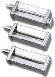 We're sure you'll agree, the flavor and texture of boxed pasta pales in comparison to fresh homemade pasta. But who has the time and energy for cranking dough through a manual machine? Fortunately that workhorse of the kitchen, your KitchenAid stand mixer is happy to do the work with this attachment. Make egg noodles, lasagna, tortellini, fettuccine, and angel hair pasta. Add herbs and seasonings to compliment any recipe.If you have a passion for perfectly prepared pasta, try making your own delectable lasagna noodles, fettuccine, or linguine fini with this pasta roller set that fits all KitchenAid stand mixers. The three attachments include a pasta roller, a fettuccine cutter, and a linguine fini cutter. Just prepare pasta dough and form it into small rectangles which are then fed into one of the attachments. Out come uniform lasagna noodles, fettuccine, linguine, or angel hair pasta. The pasta can be enjoyed fresh or frozen or dried for later. Complete directions, cooking t ips, and recipes are included, though cleaning the attachments can be a bit of a challenge, as they can't be washed in water, and any dried-on pasta particles must be removed with the included cleaning brush and toothpicks. --Marcie Bovetz- Stainless-steel set includes pasta roller, fettuccine cutter, and linguine fine cutter