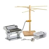 This set includes all the tools to make a proper homemade Italian meal. Pasta machine, pasta drying rack, meatball scoop and multipurpose cheese grater. Pasta machine and meatball scoop are stainless steel; drying rack is oak wood; grater is metal and plastic. Cheese grater has handy dispenser and storage container for easy food prep.- Pasta machine and meatball scoop are stainless steel